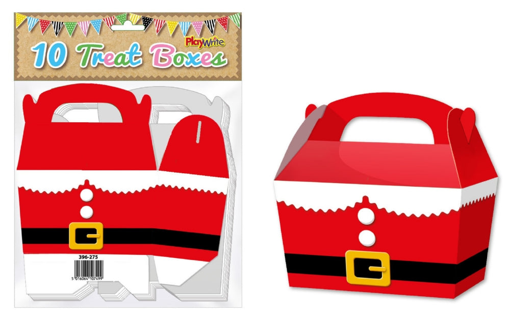 • Santa Suit Treat Boxes: Bring festive cheer with our set of 10 boxes, perfect for small treats or cupcakes.