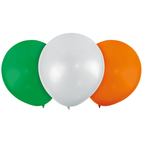 St. Patrick's Day Tricolour Balloons - 12 Pack Irish Flag Party Decoration Green White Orange