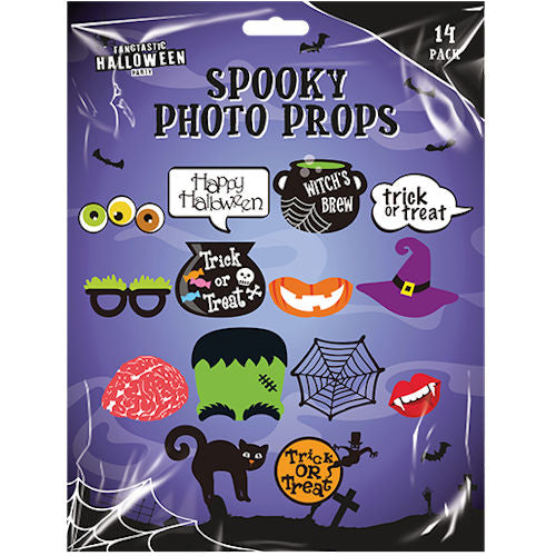 Halloween Photo Props - 14 Piece Spooky Party Decoration Selfie Booth Fun Festive Haunted House