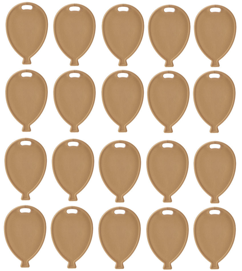 - Set of 20 Gold Balloon Shaped Weights: Elevate your party decor with our set of 20 gold balloon shaped weights.
