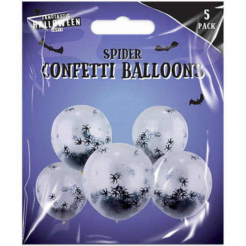 Spider Confetti Balloons - 5 Pack Halloween Party Decoration Spooky Festive Haunted House Ghost Witch Bat