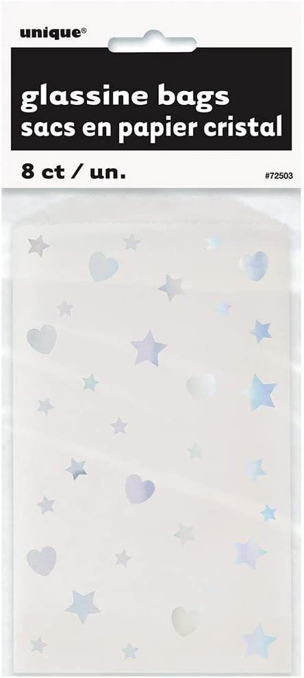 8 Iridescent Hearts & Stars Glassine Treat Bags