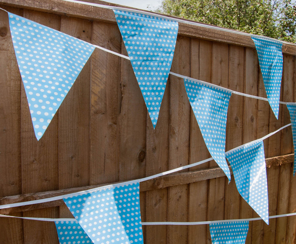 - Blue Polka Dot Triangular Bunting: Bring a fun and festive vibe to your decorations with this charming blue polka dot bunting.