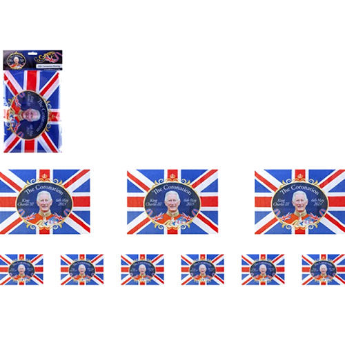 - Coronation Flag Rayon Bunting: Honour the appointment of our new monarch with this quality rayon bunting.