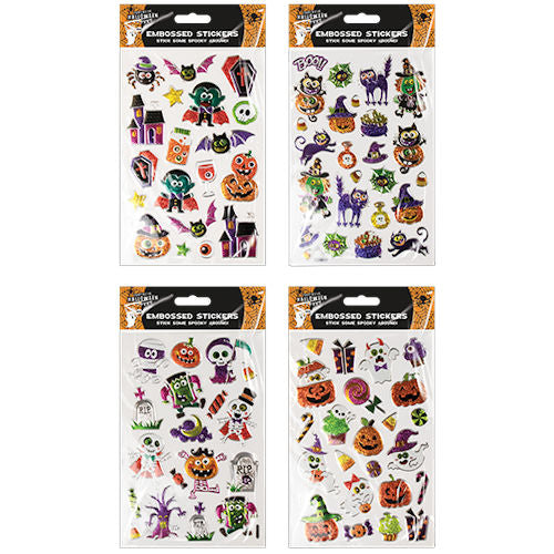 Embossed Foil Halloween Stickers - Assorted Spooky Decoration Party Haunted House Ghost Witch Bat Spider Web