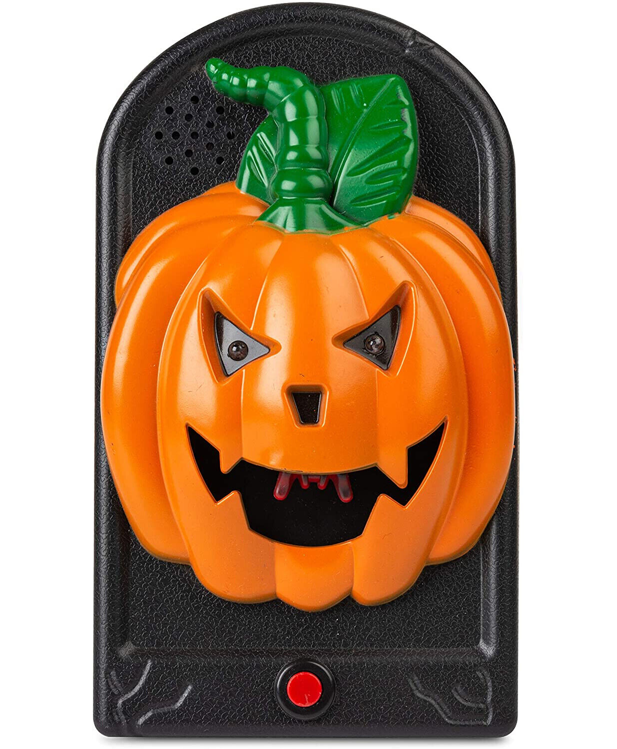 • Spooky Door Decoration: Delight and surprise your trick-or-treaters with this fun LED Halloween Pumpkin Doorbell.