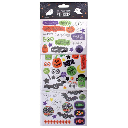 Halloween Sticker Sheet - 100 Stickers Assorted Spooky Party Decoration Crafts