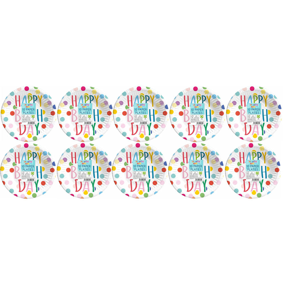 Happy Birthday Design Paper Plates 7" - 10 Pack Party Tableware Celebration